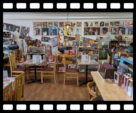 店内には昭和のおもちゃや雑誌、レコードが並び、